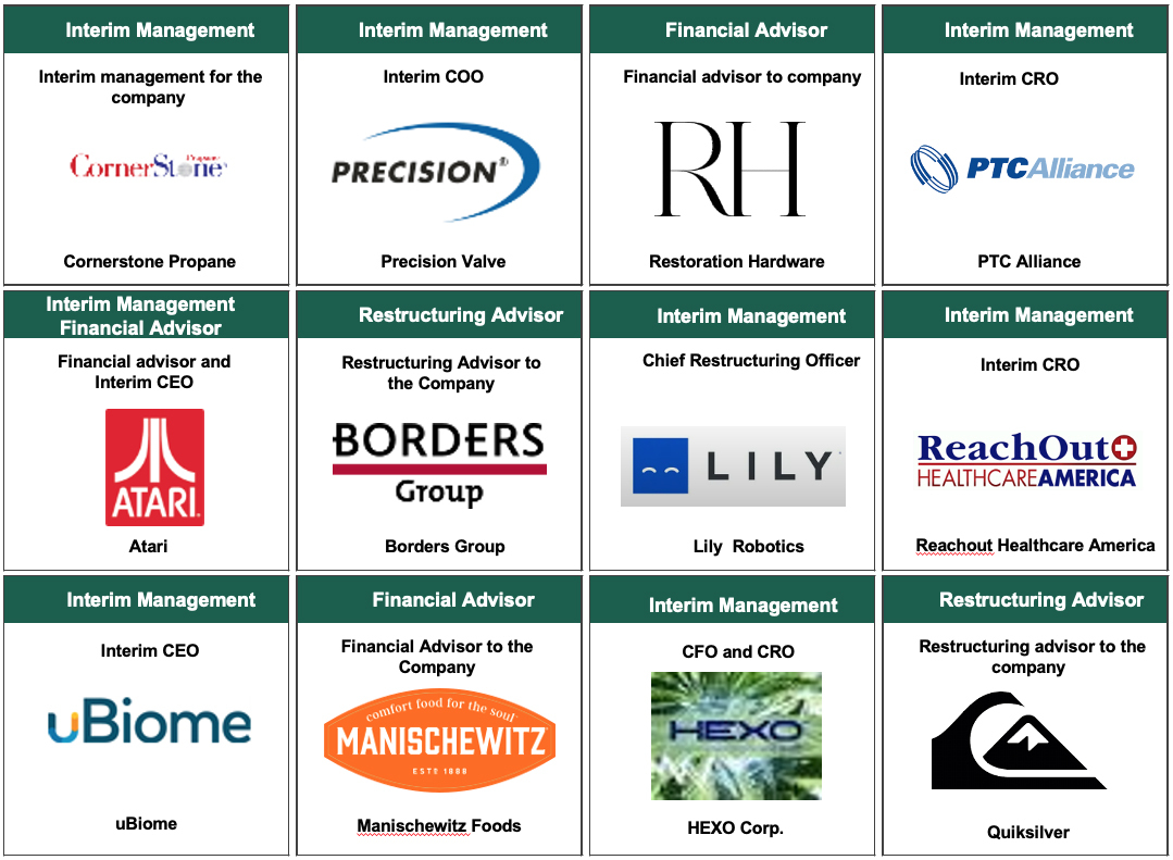 his clients. His experience includes roles as CEO, COO, CFO and Chief